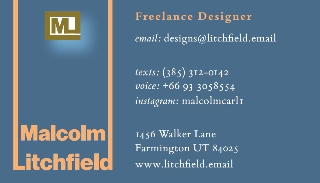 I think my biggest challenge was the length of my name! Finding a way to make that prominent while giving room for the rest of the information was a challenge. Fortunately Bembo Book has a narrow letter width, so it was easier to add readable contact information without taking up a lot of room. I also think using old-style numbers gives the card a bit more class and "bookish" elegance.