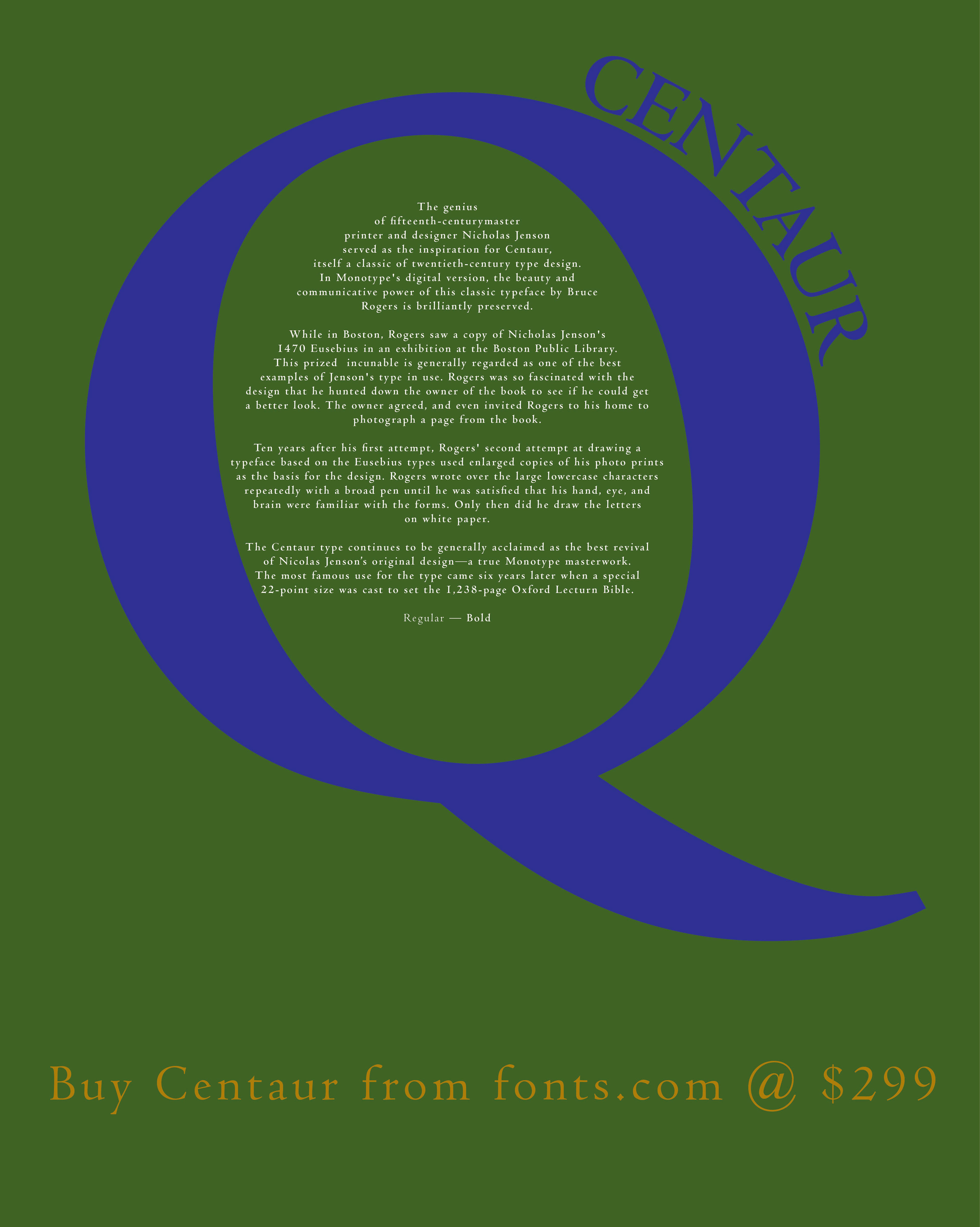 These are inspired by the project of doing a poster for a font. It quickly became obvious that the Qs are very different in the various fonts. So I used a single design, basically, and came up with several posters that vividly display how differently the Qs are represented in the various typefaces.